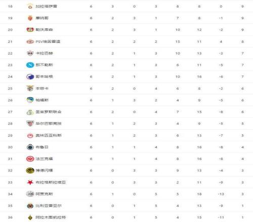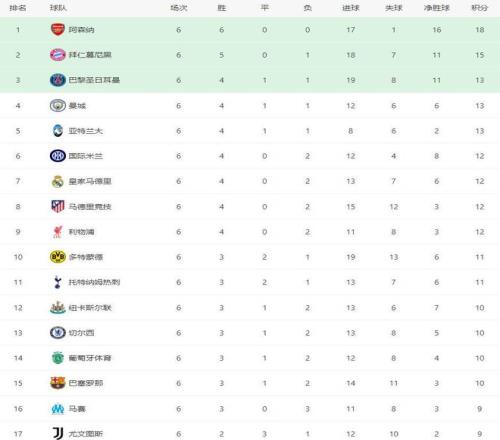 随着曼城21皇马,阿森纳30,欧冠最新积分榜:第3到第9只差1分